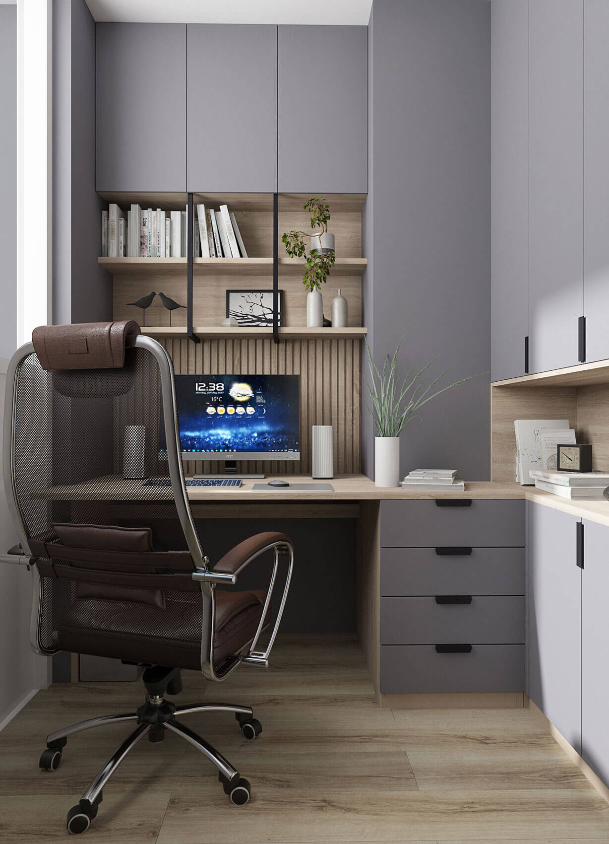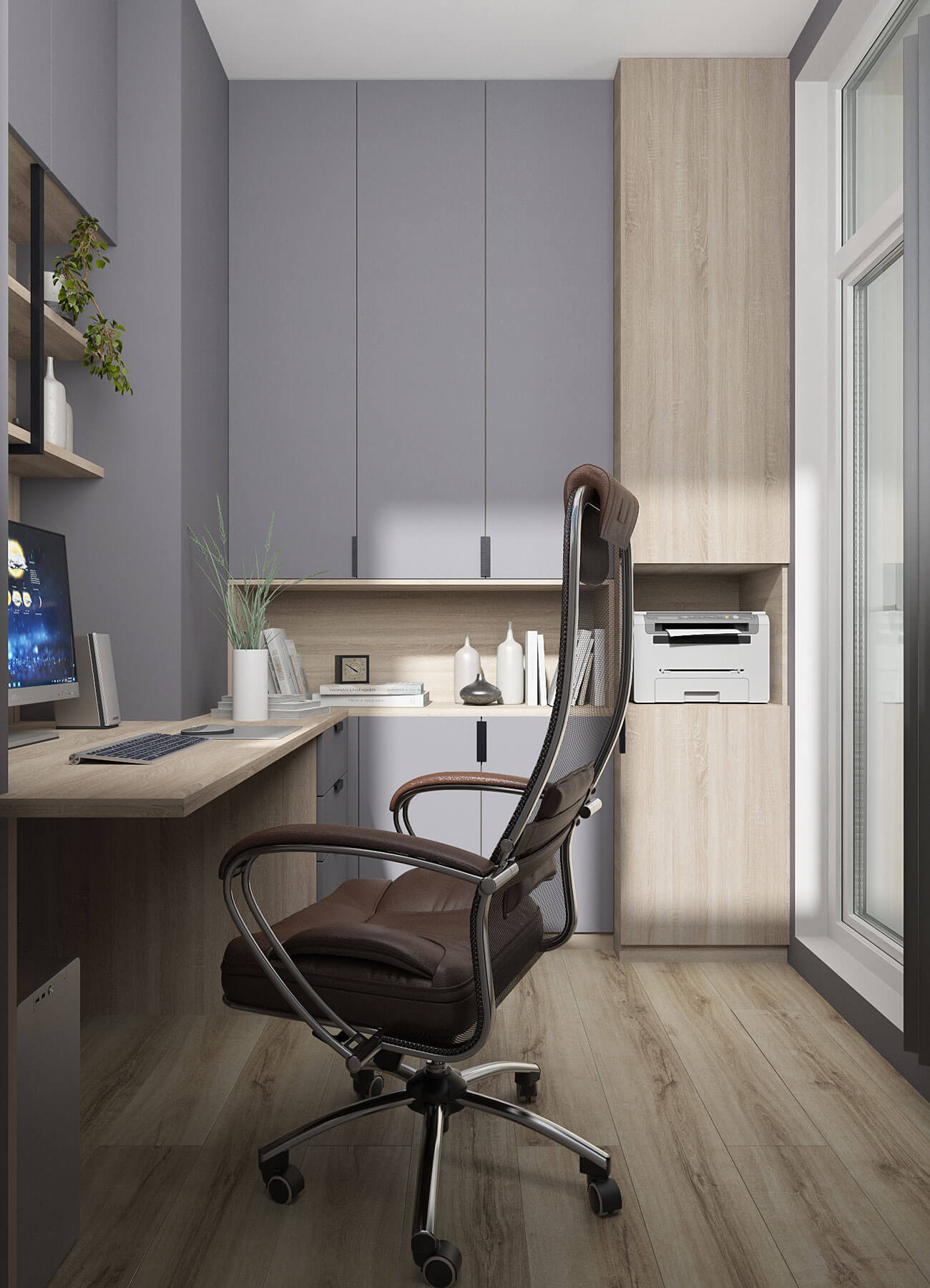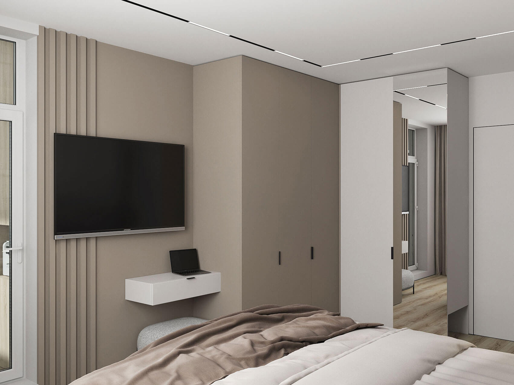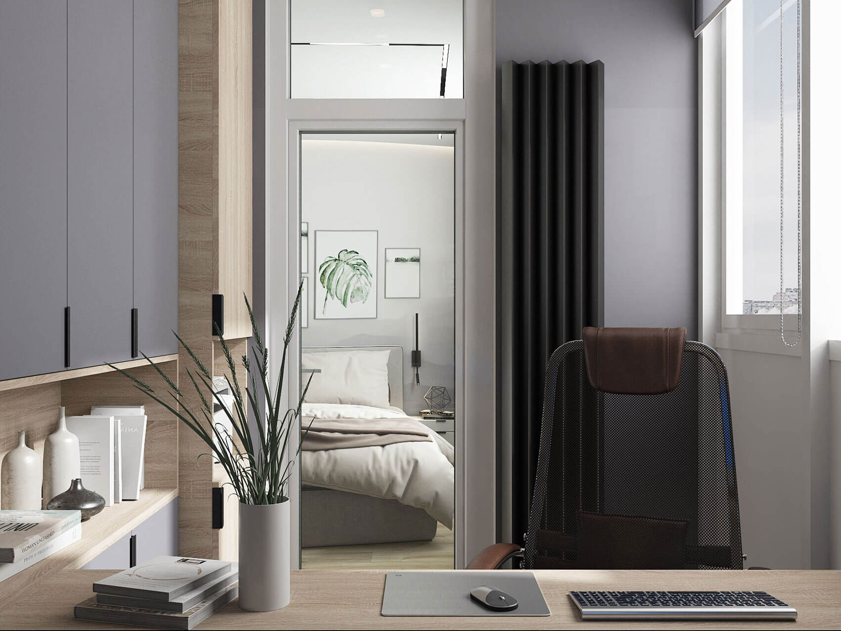 - Master bedroom: includes direct access to a 3.5 m² private bathroom with shower, and a cozy 4.4 m² home office arranged on the attached loggia.