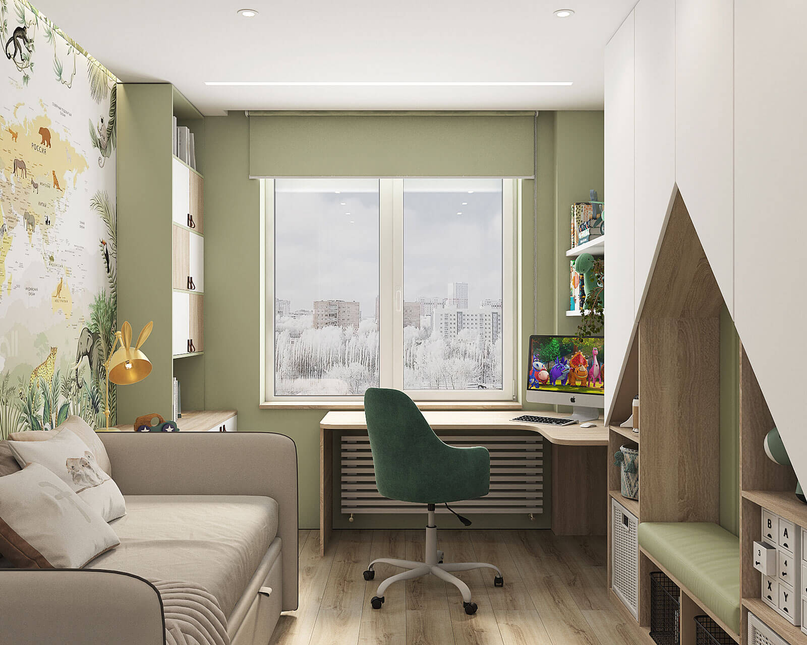 - Two 14.3 m² kids’ rooms: each child has their own space for sleeping, studying, and play.