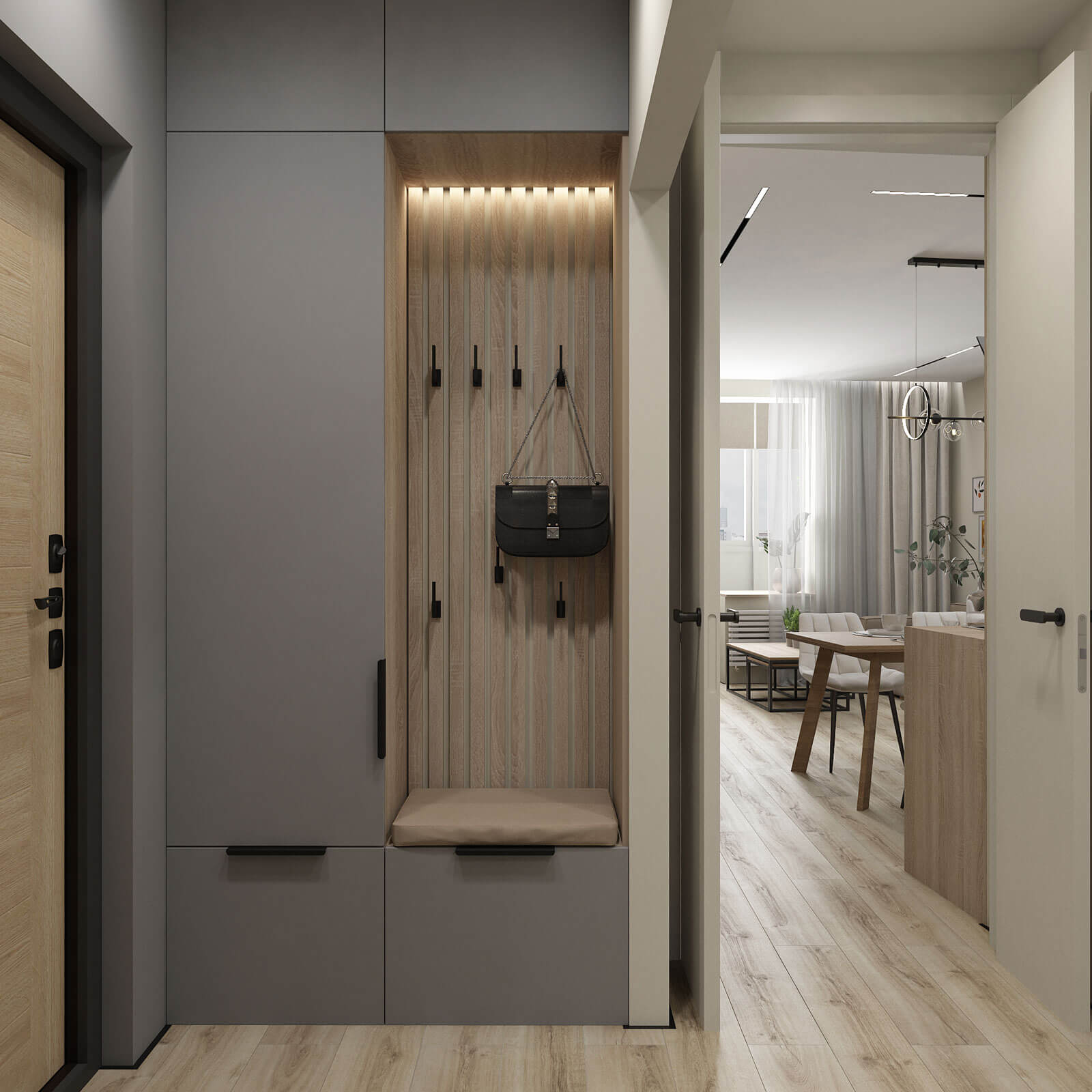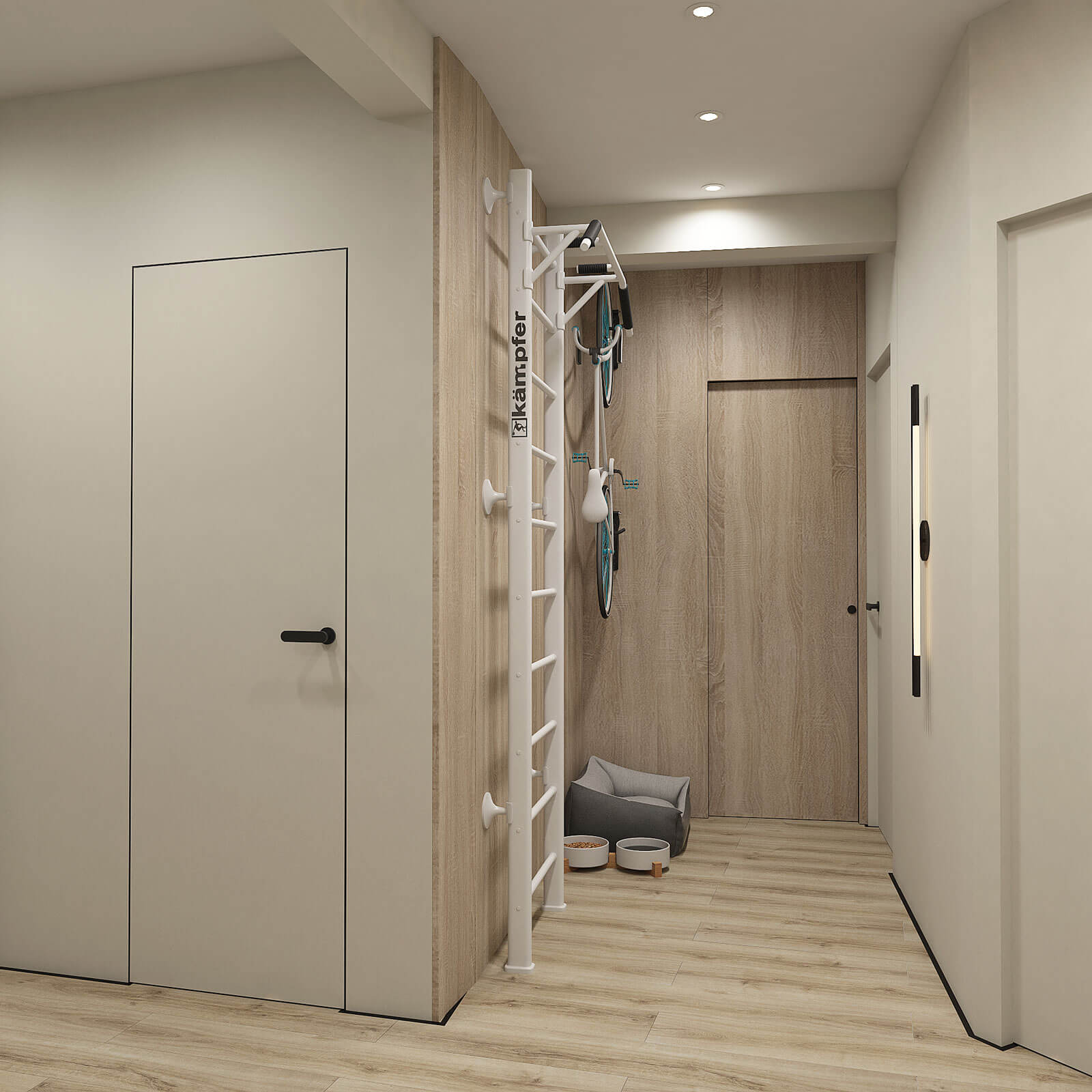 - Optimized hallway: restructured into two zones — a functional entryway and a play/workout area — without wasting square meters.