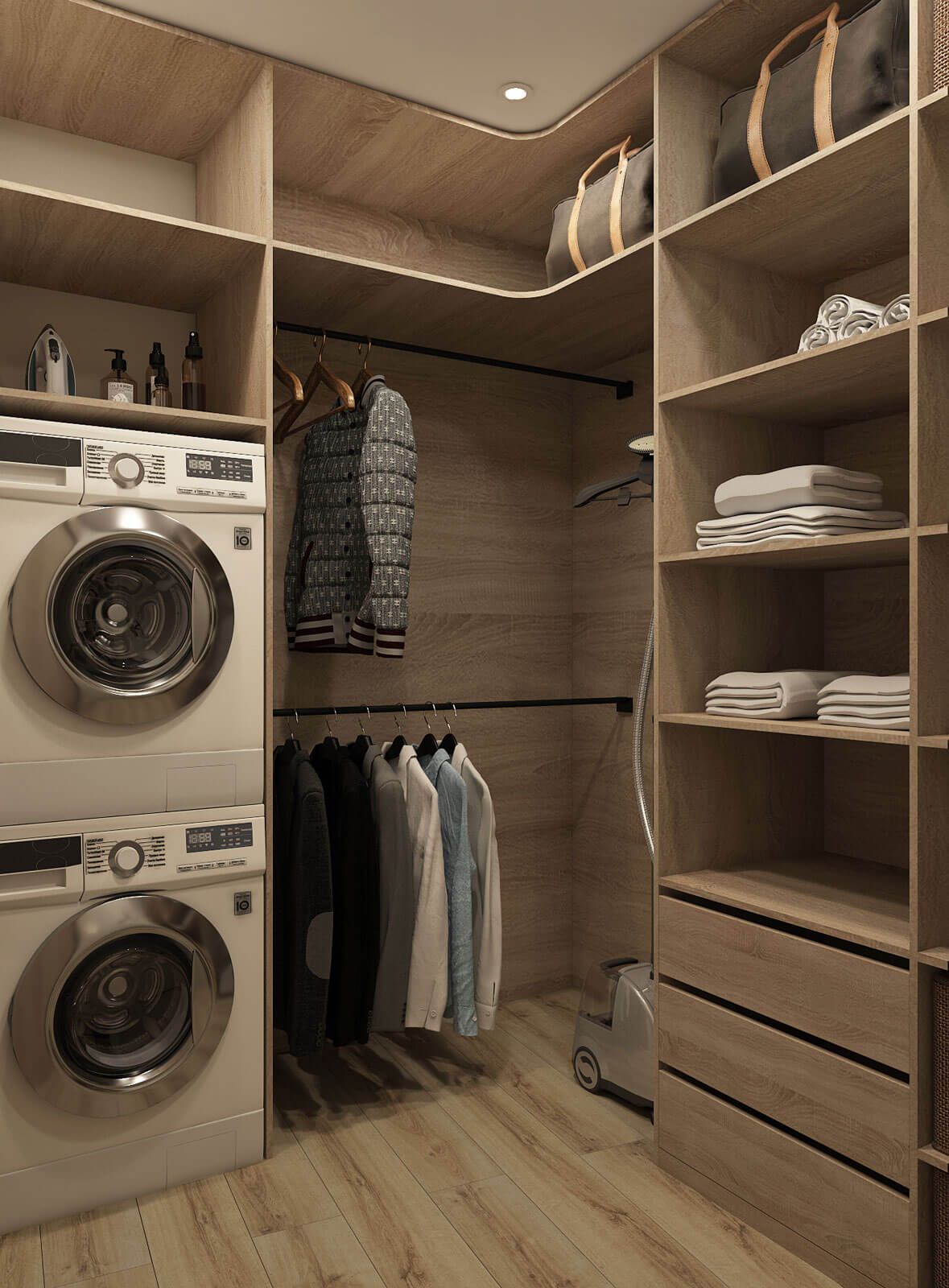 - 4.5 m² laundry/utility room: a separate space for household tasks, with dedicated spots for washing and drying machines.