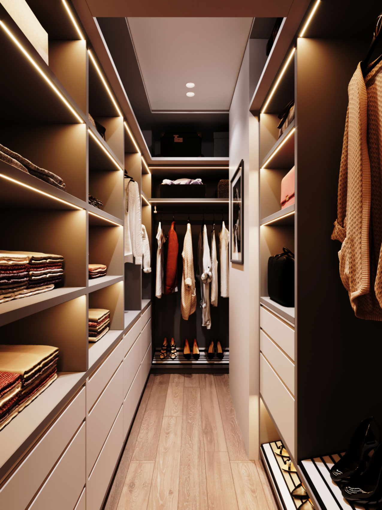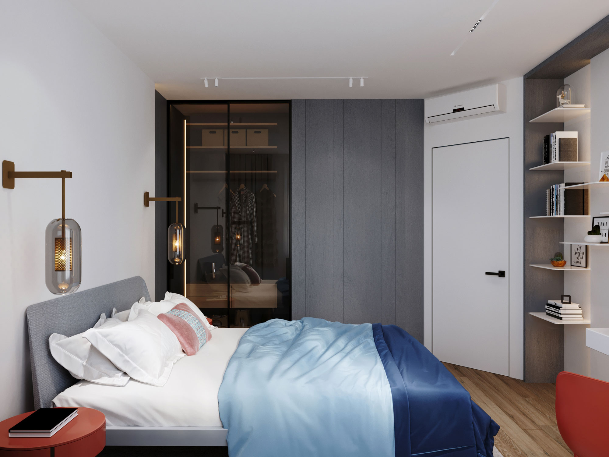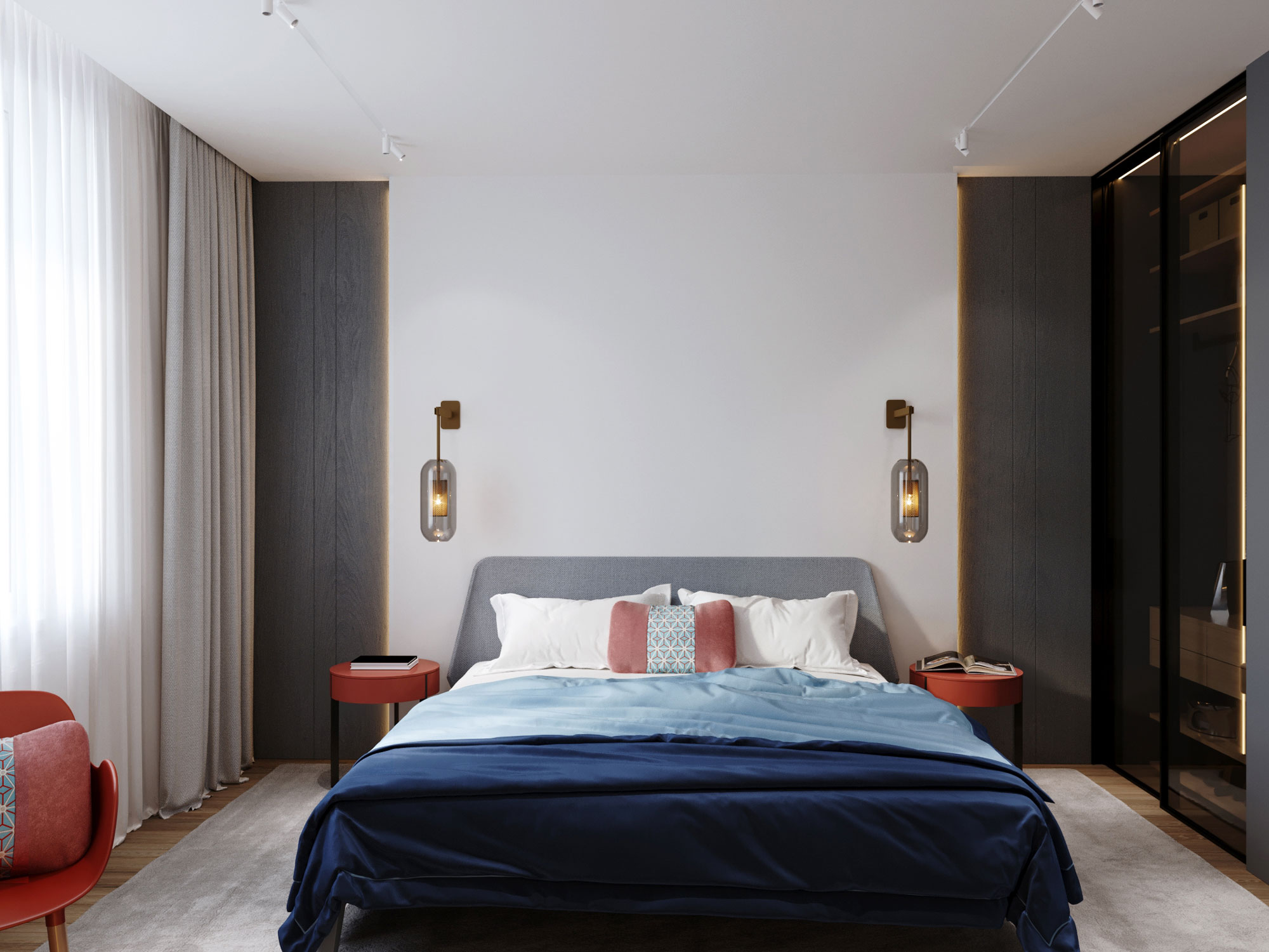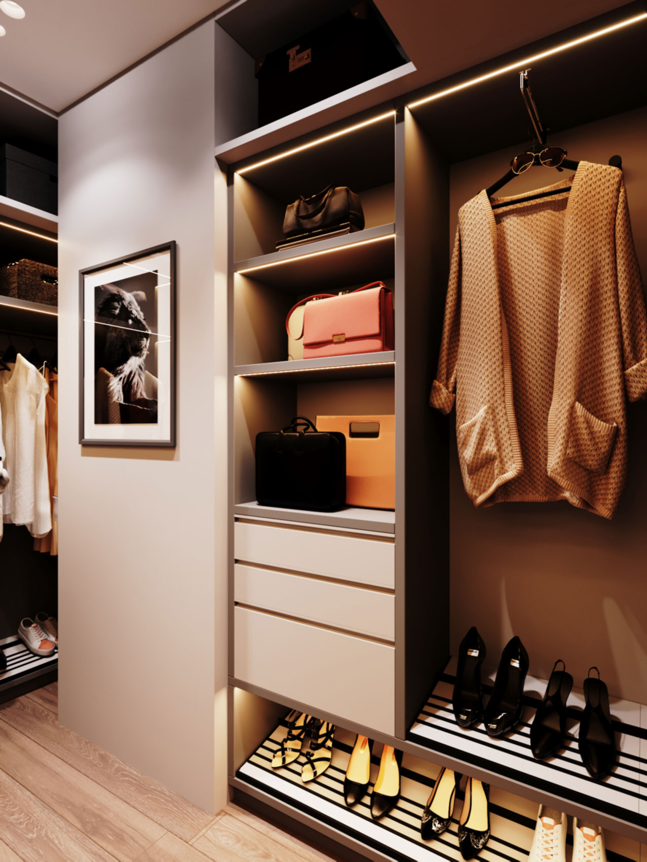 - Integrated storage systems: Compact built-in solutions were added throughout the apartment, preserving the minimalist aesthetic.