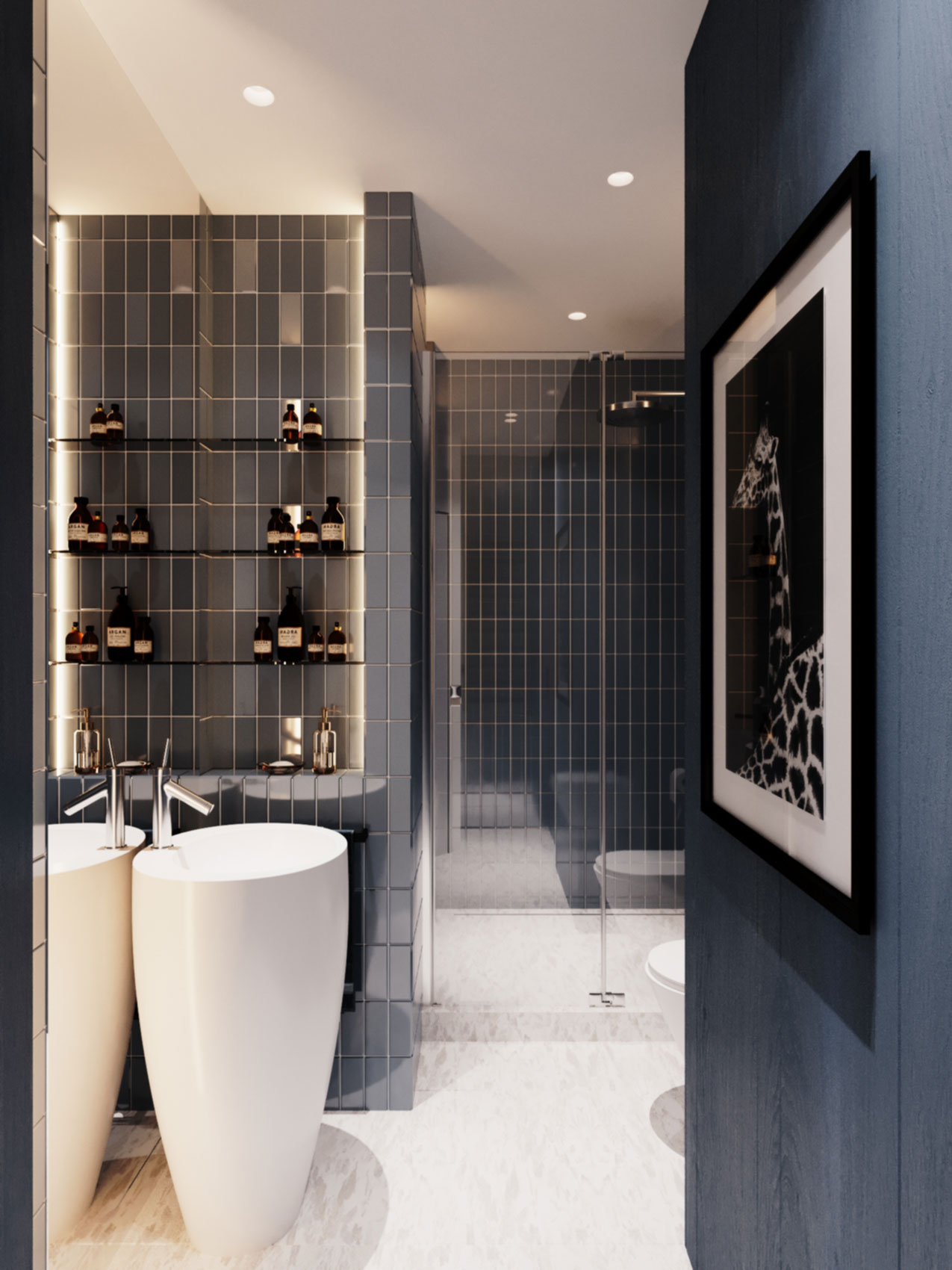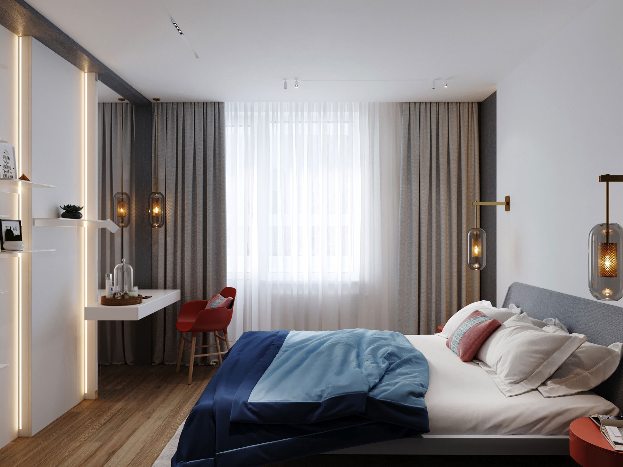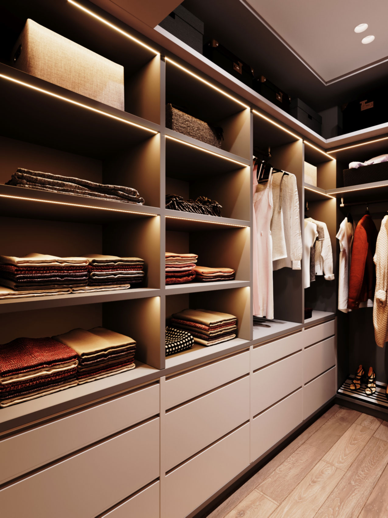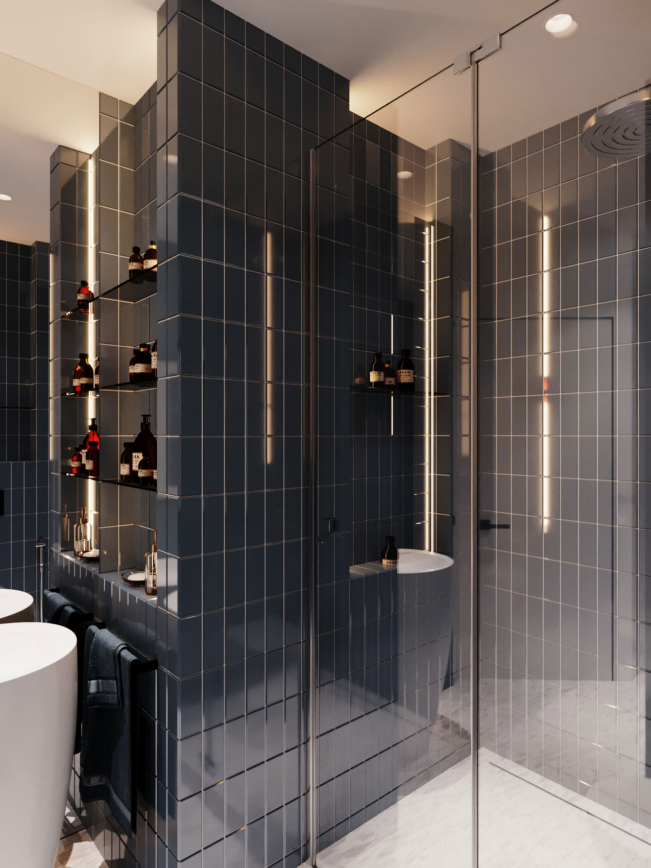 - Integrated storage systems: Compact built-in solutions were added throughout the apartment, preserving the minimalist aesthetic.