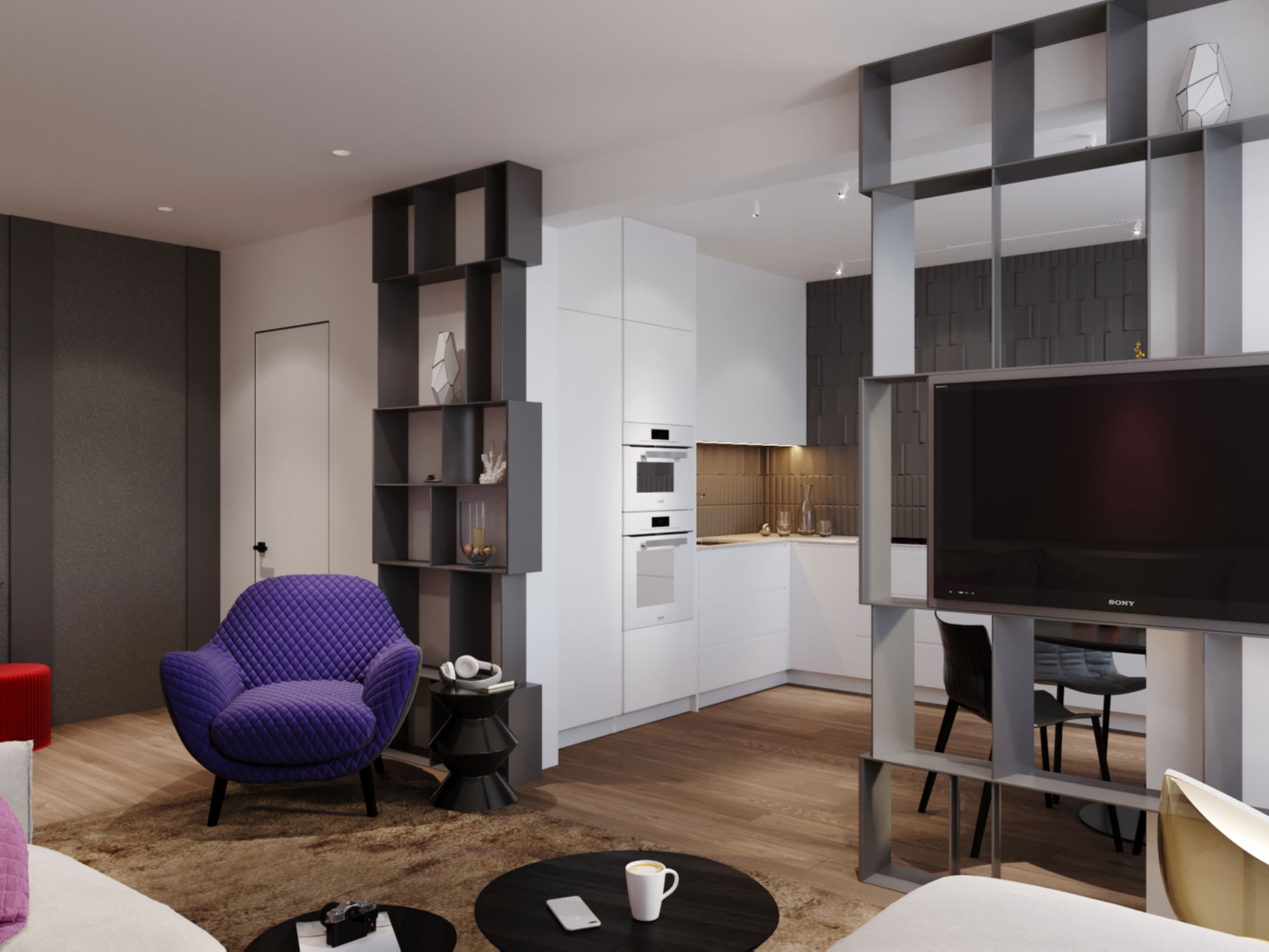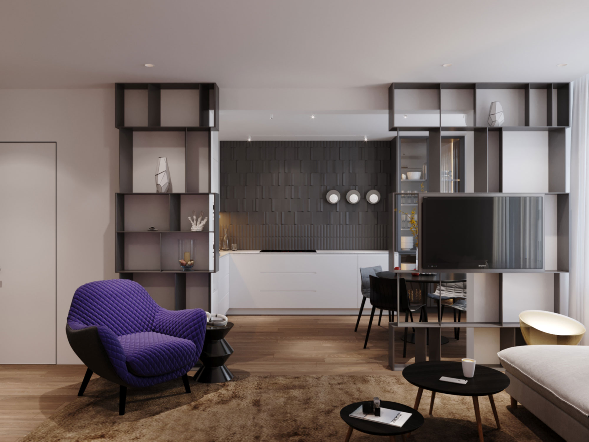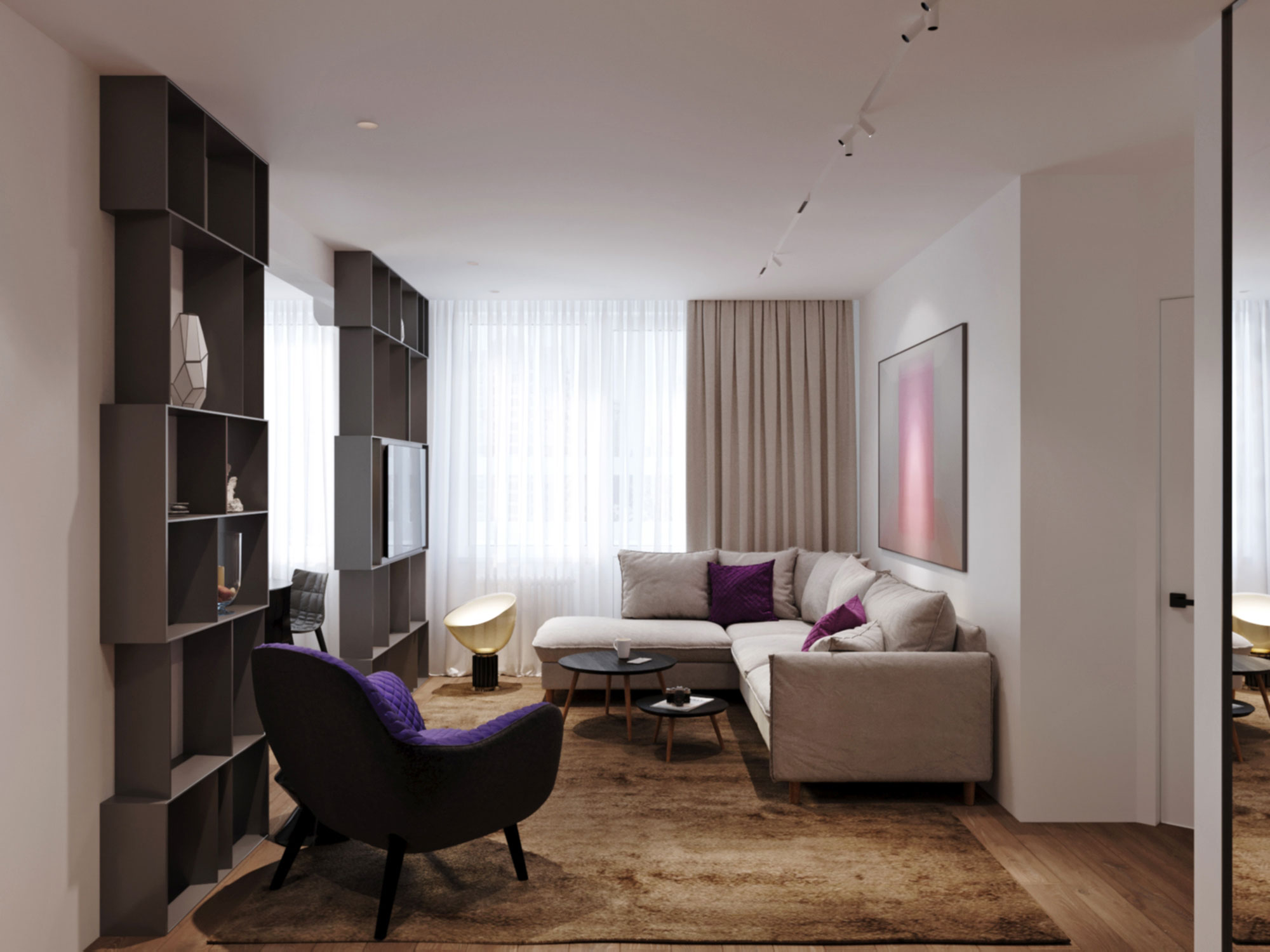 This project transforms a 64 m² two-room apartment into a thoughtfully redesigned one-bedroom home with a calm, Scandinavian aesthetic. By reworking the inefficient corridor and rethinking the relationship between rooms, we created an open-plan living area, a generous walk-in wardrobe, and improved circulation throughout. The result is a light-filled, functional space designed for the comfortable everyday life of a young couple.
