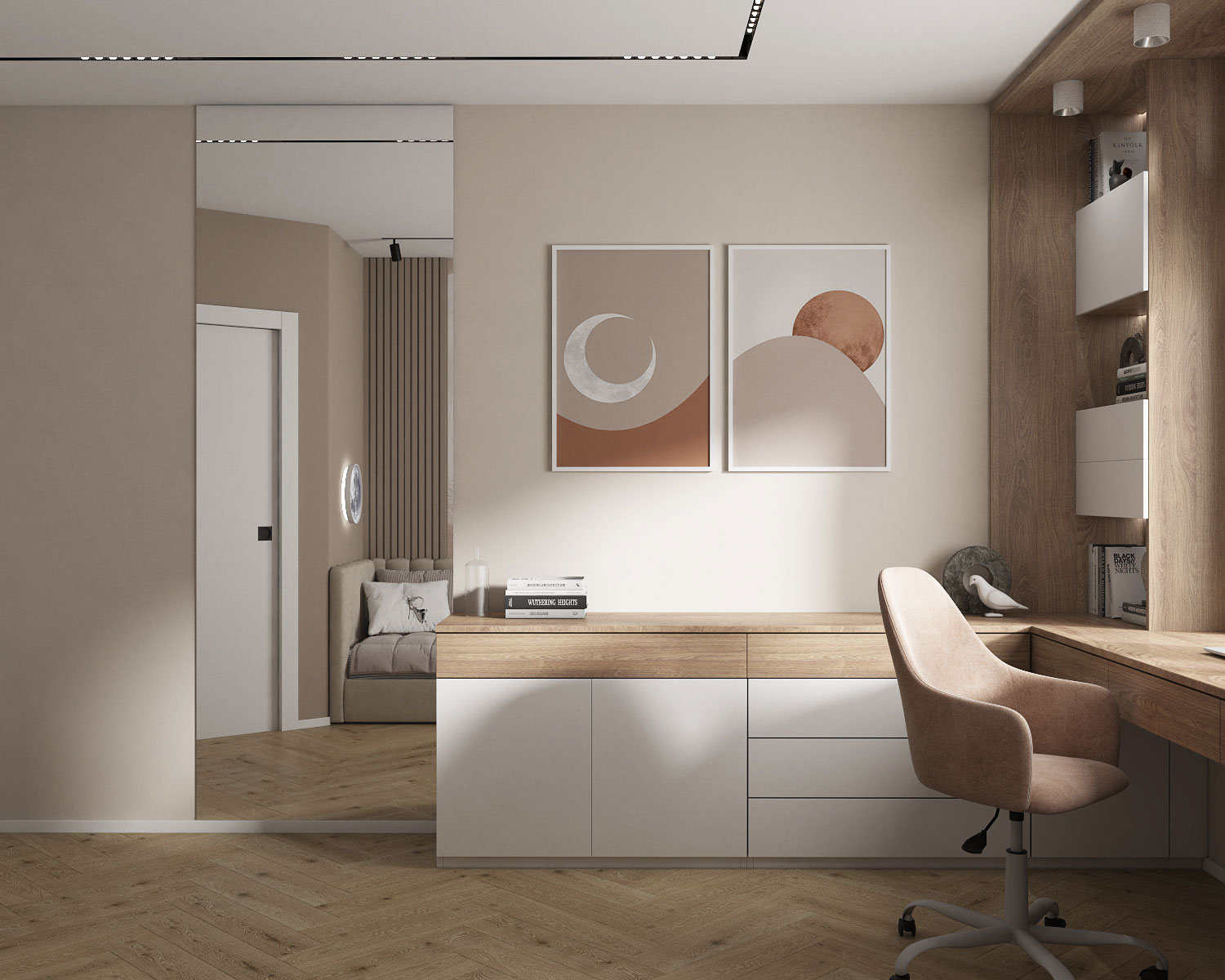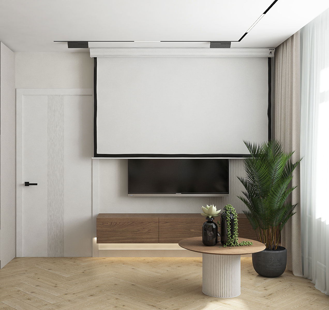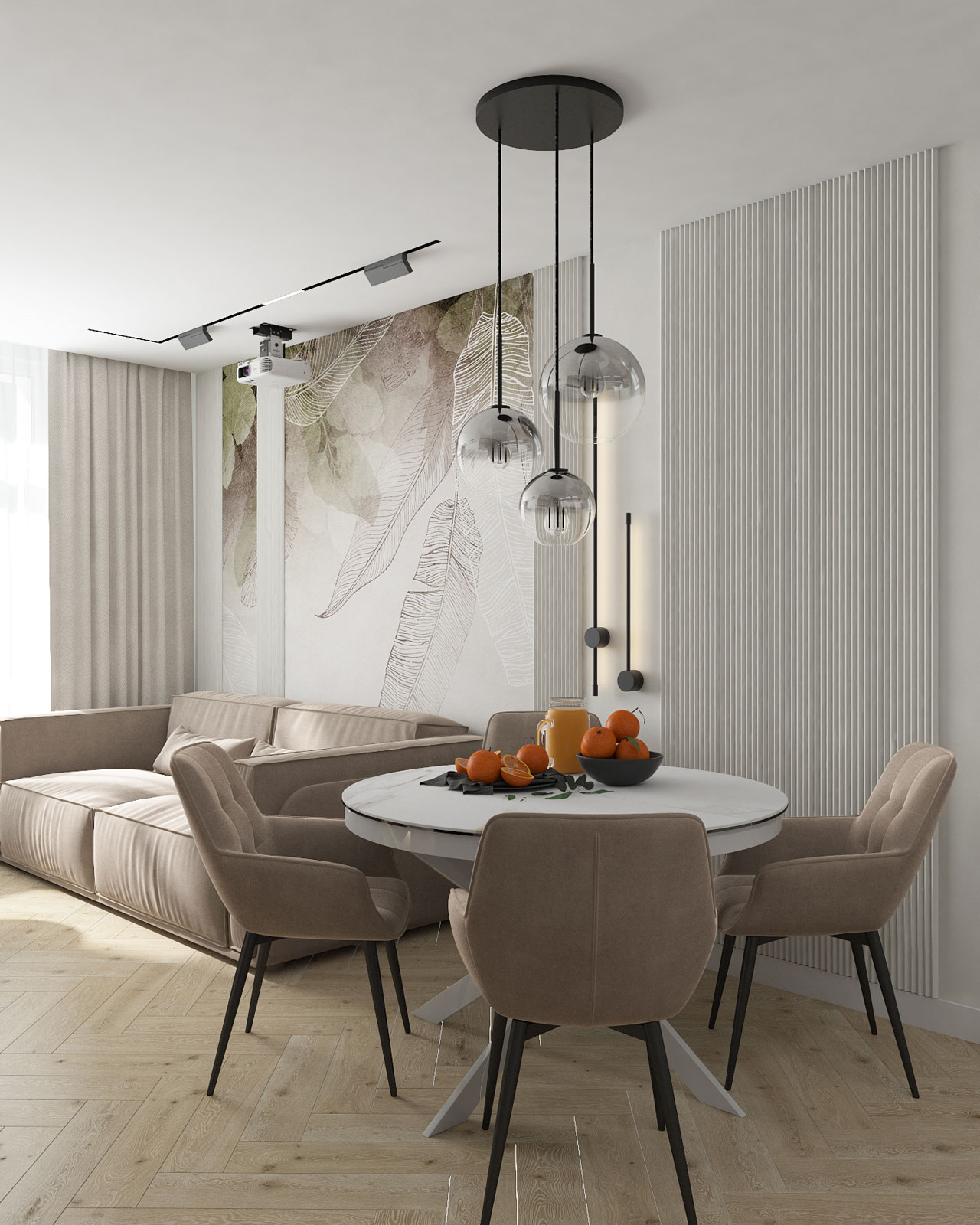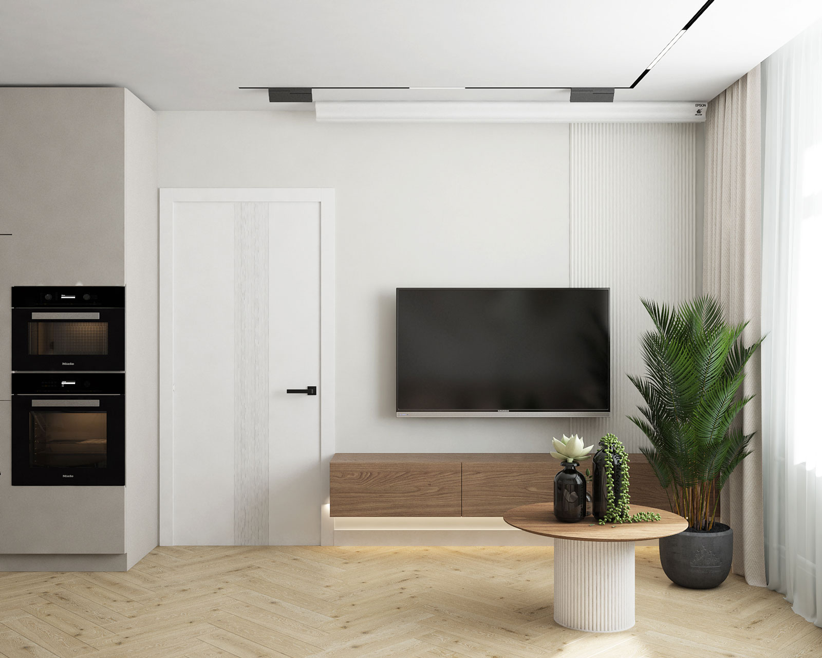 According to the clients’ wishes, the interior design was executed in a modern, functional style with Scandinavian elements. This approach allowed us to create a bright, ergonomic, and aesthetically pleasing space where every detail supports the comfort and needs of a young family.