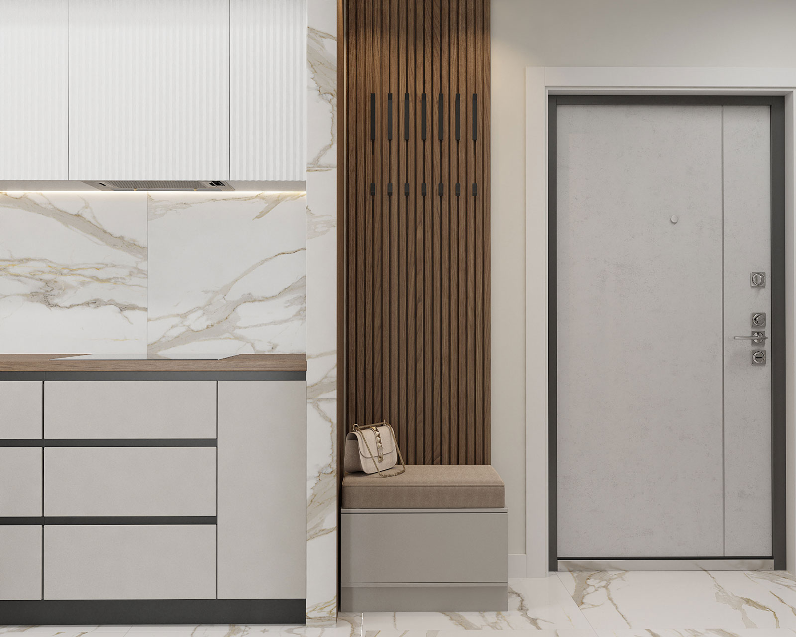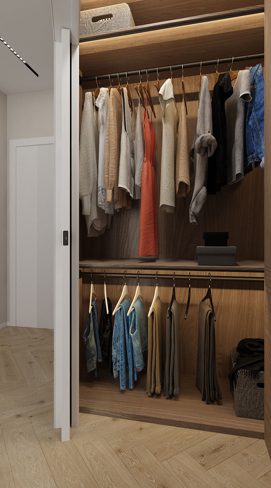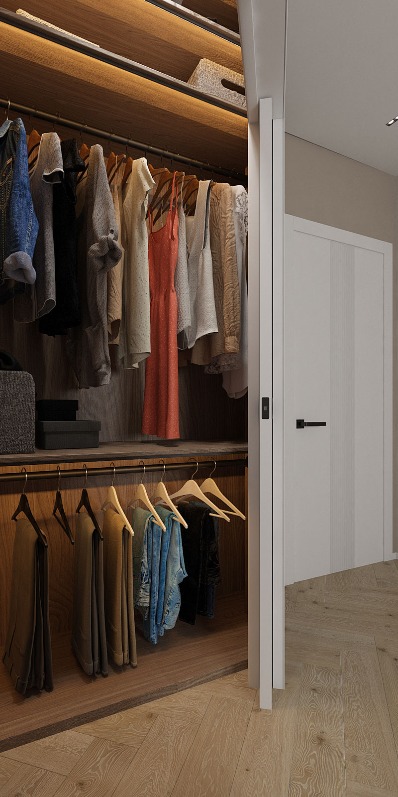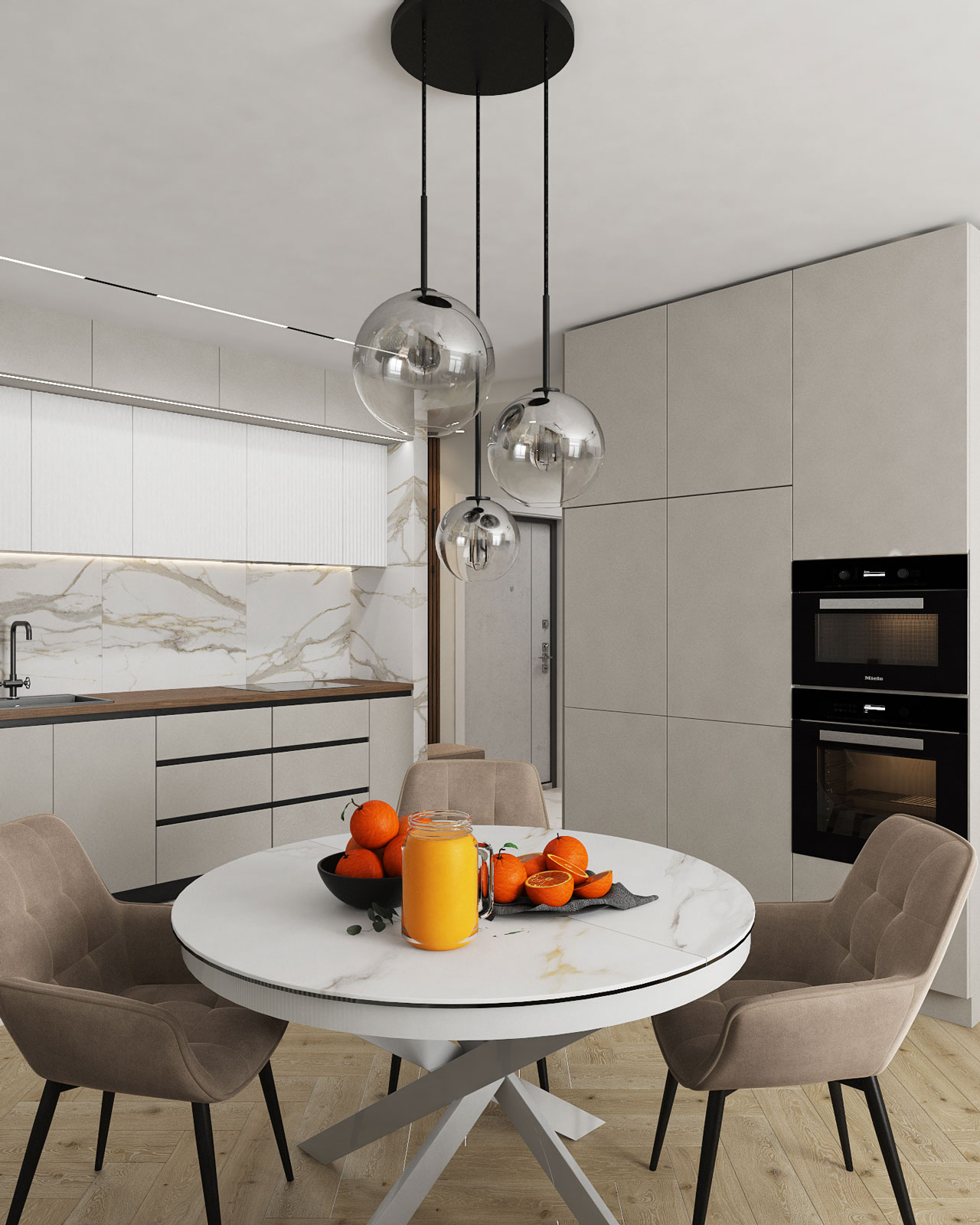 According to the clients’ wishes, the interior design was executed in a modern, functional style with Scandinavian elements. This approach allowed us to create a bright, ergonomic, and aesthetically pleasing space where every detail supports the comfort and needs of a young family.