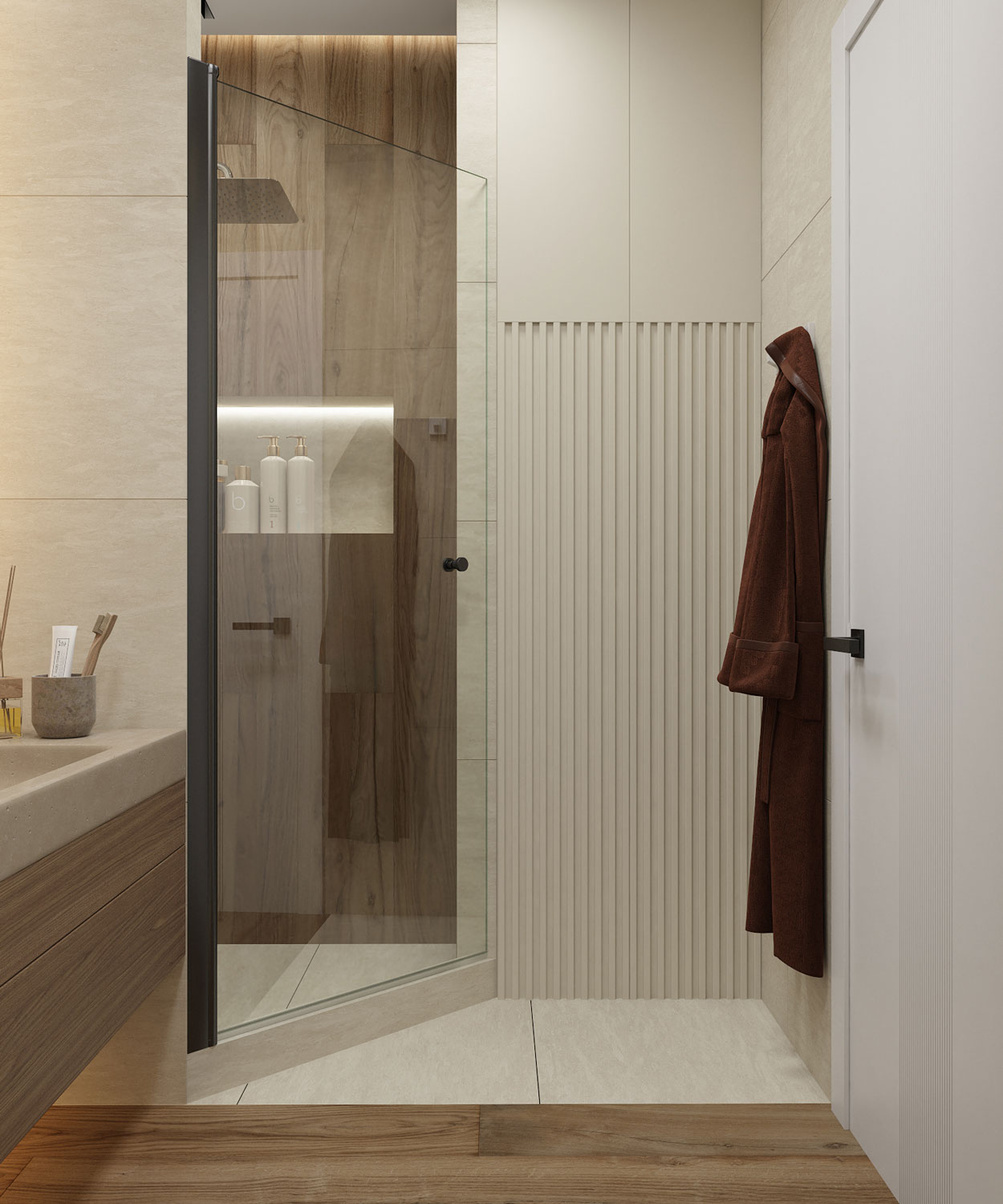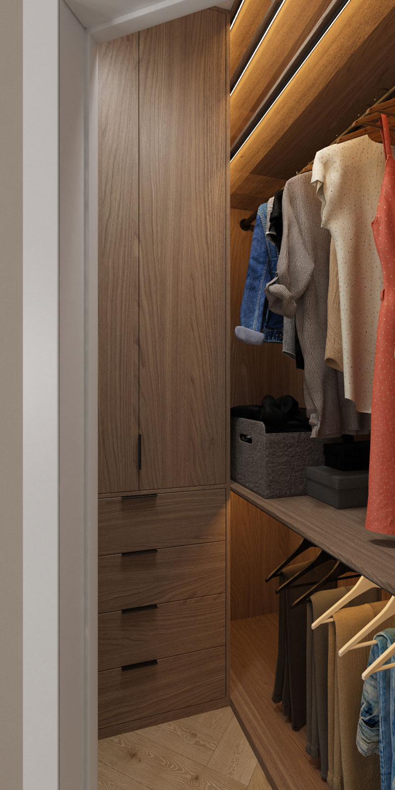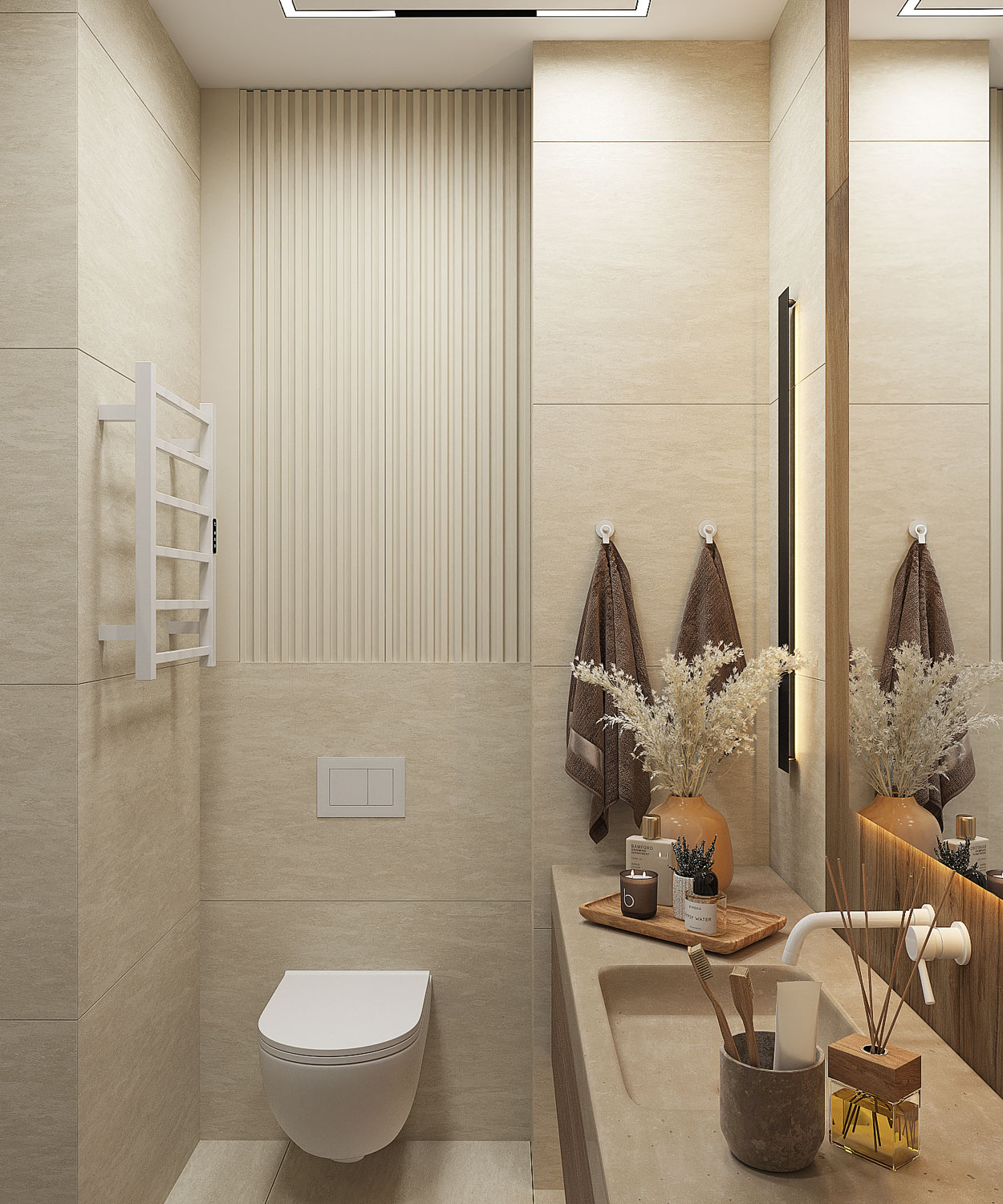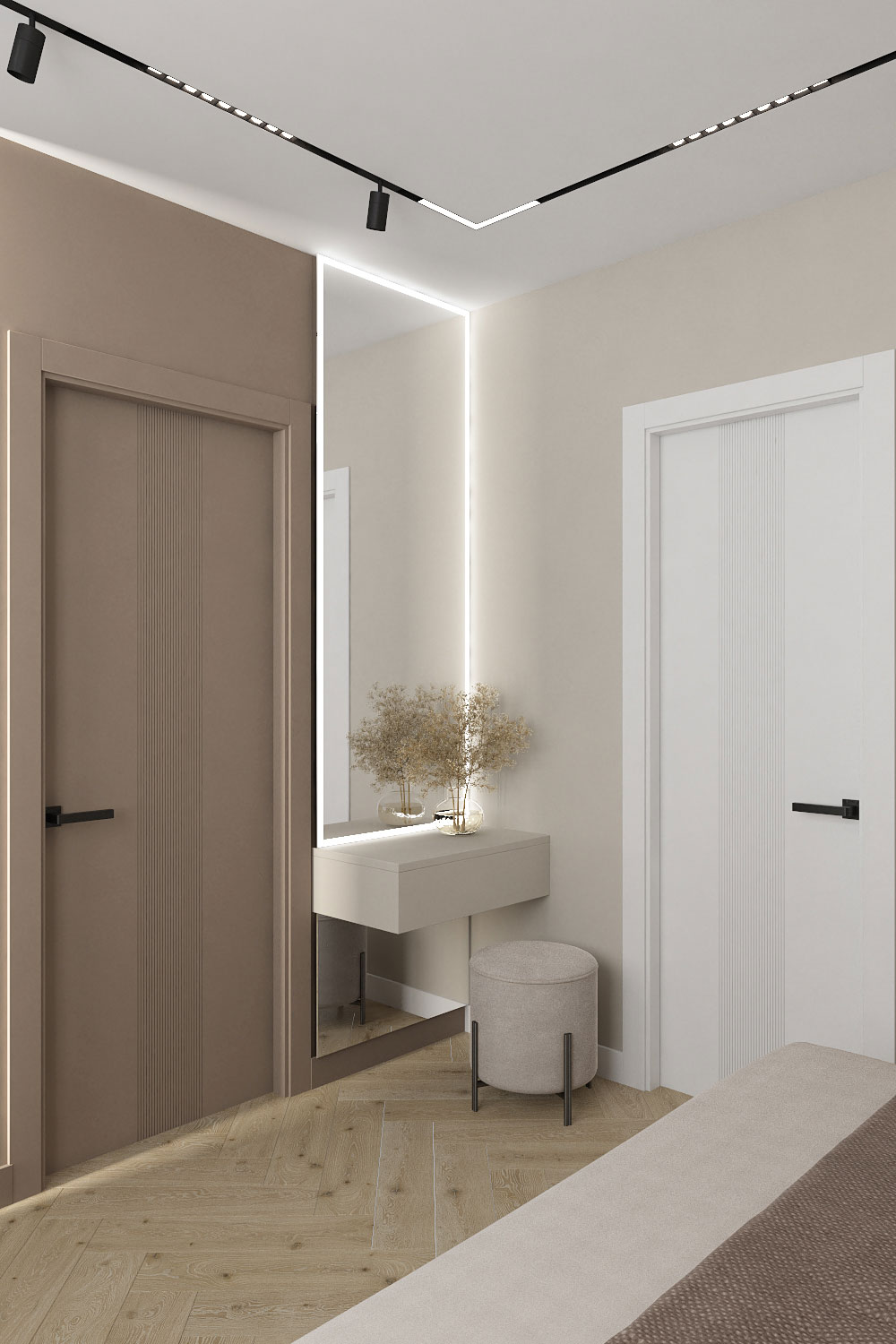 According to the clients’ wishes, the interior design was executed in a modern, functional style with Scandinavian elements. This approach allowed us to create a bright, ergonomic, and aesthetically pleasing space where every detail supports the comfort and needs of a young family.