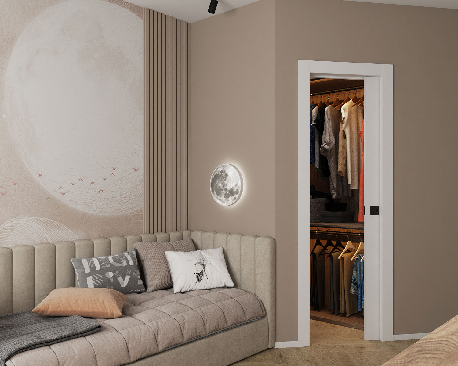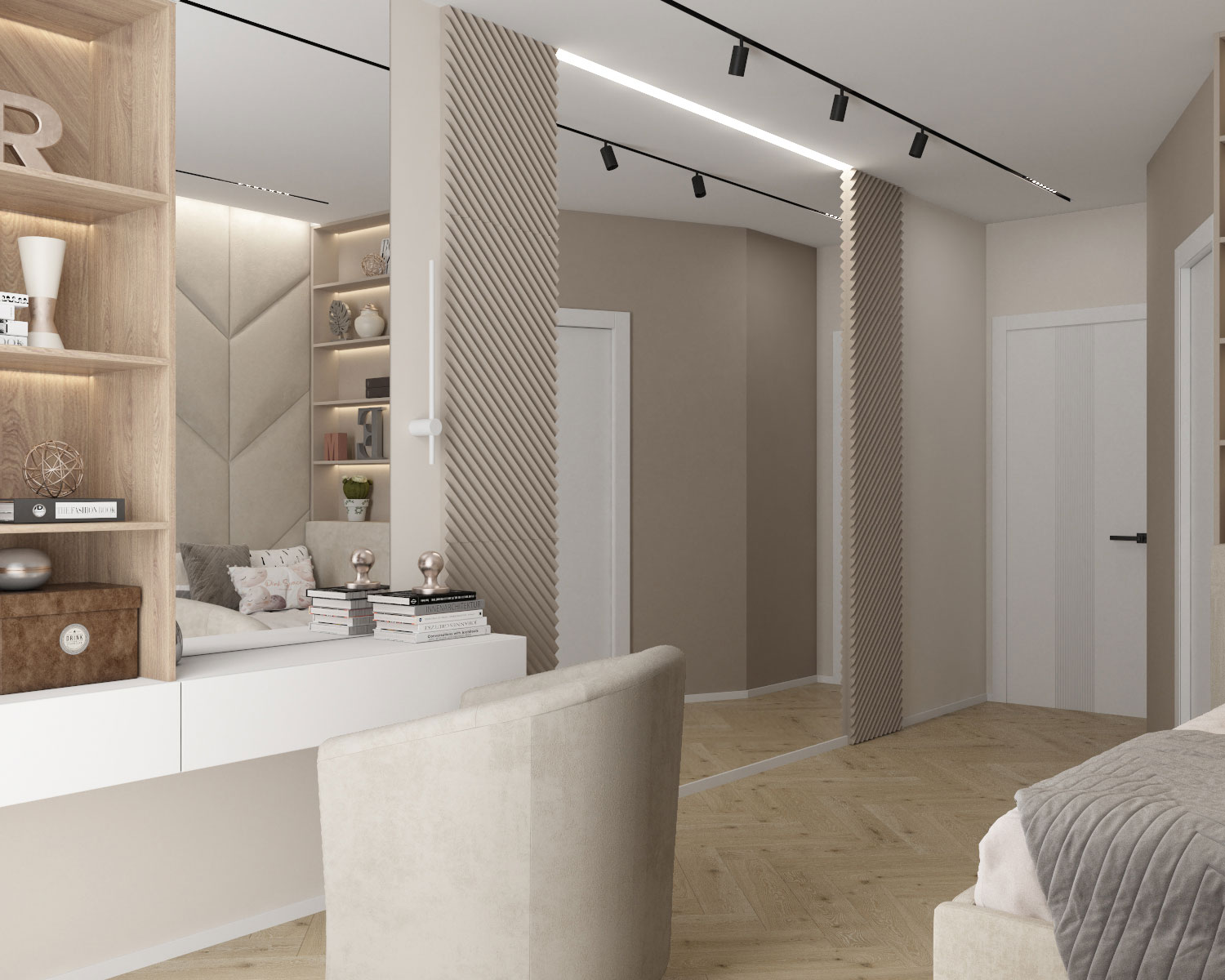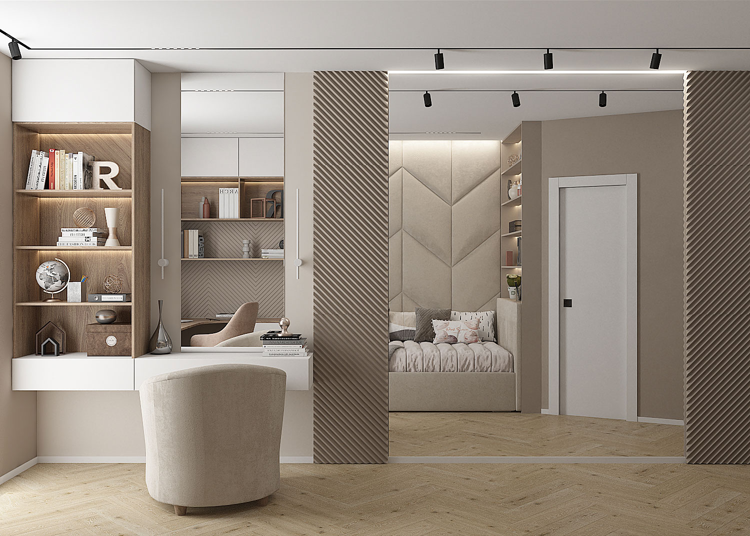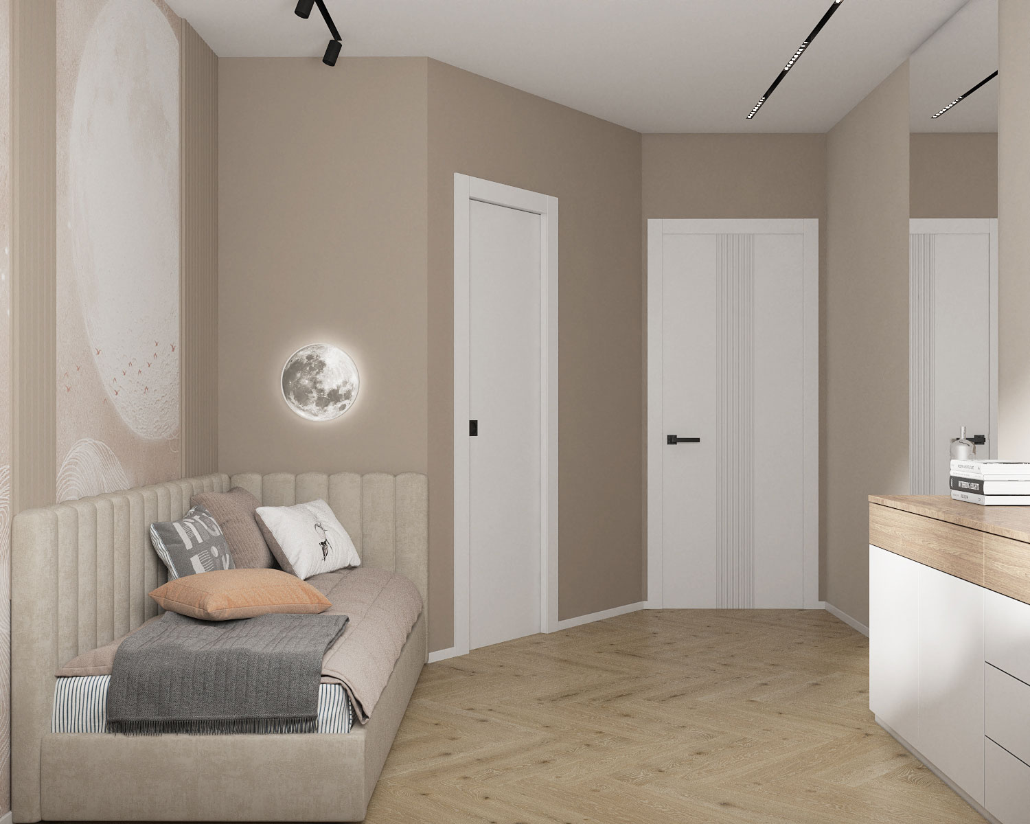 This project was developed for a young family with two children living. Our task was to transform a 90 m² three-room + kitchen apartment into a full-fledged three-bedroom home with two comfortable children’s rooms. The interior was designed in a modern, functional style with Scandinavian influences, focused on everyday comfort and aesthetics.