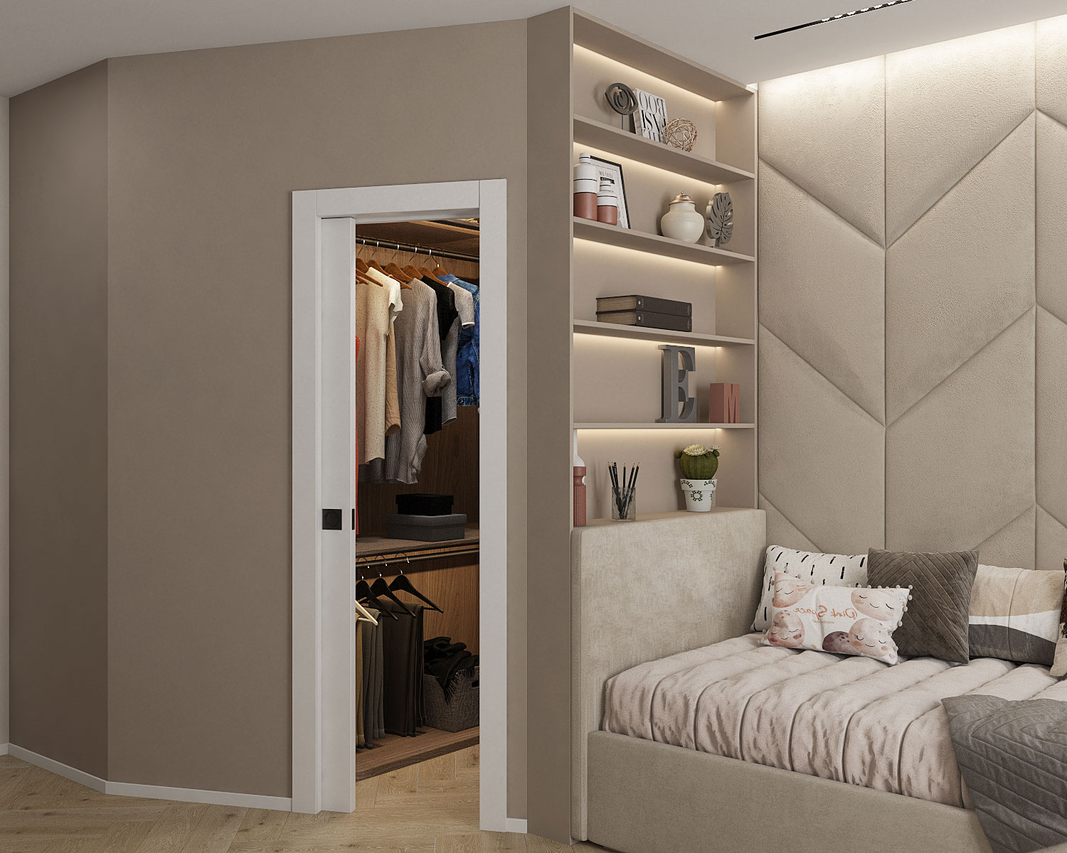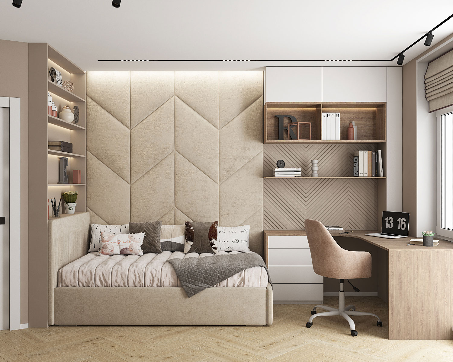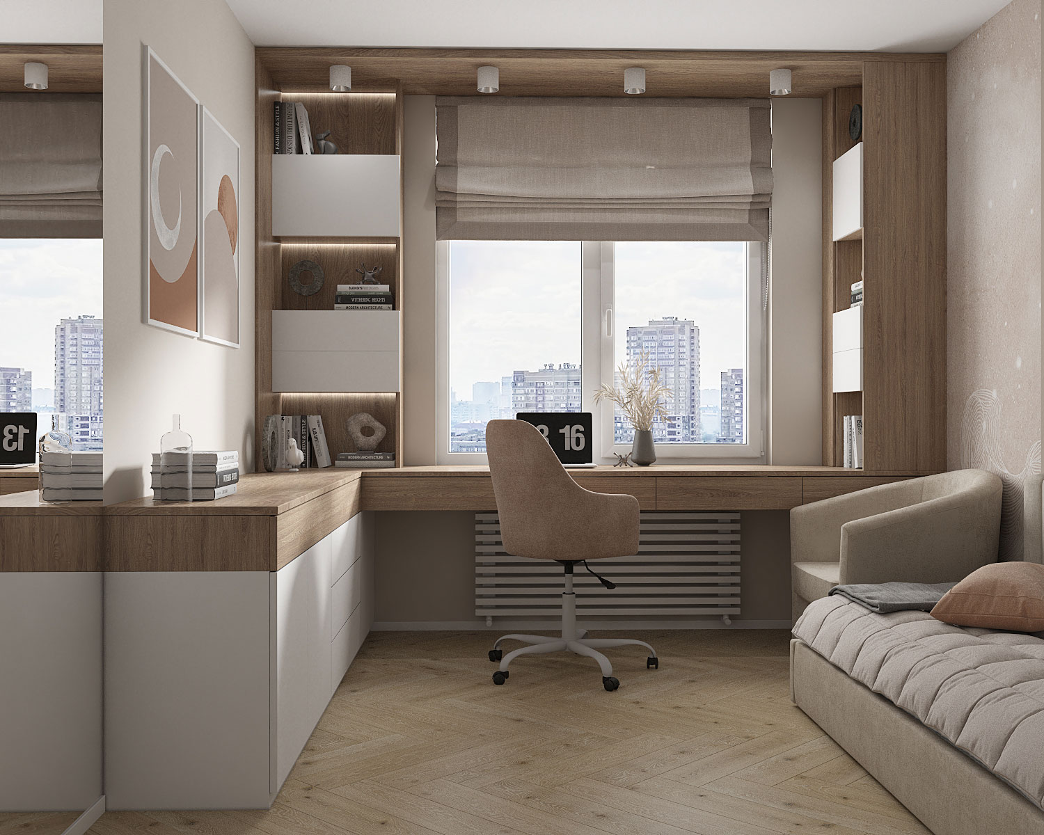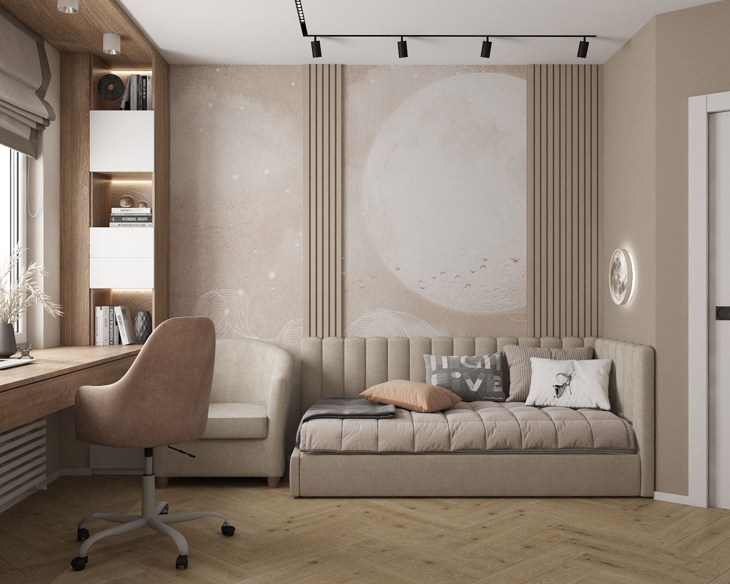 This project was developed for a young family with two children living. Our task was to transform a 90 m² three-room + kitchen apartment into a full-fledged three-bedroom home with two comfortable children’s rooms. The interior was designed in a modern, functional style with Scandinavian influences, focused on everyday comfort and aesthetics.