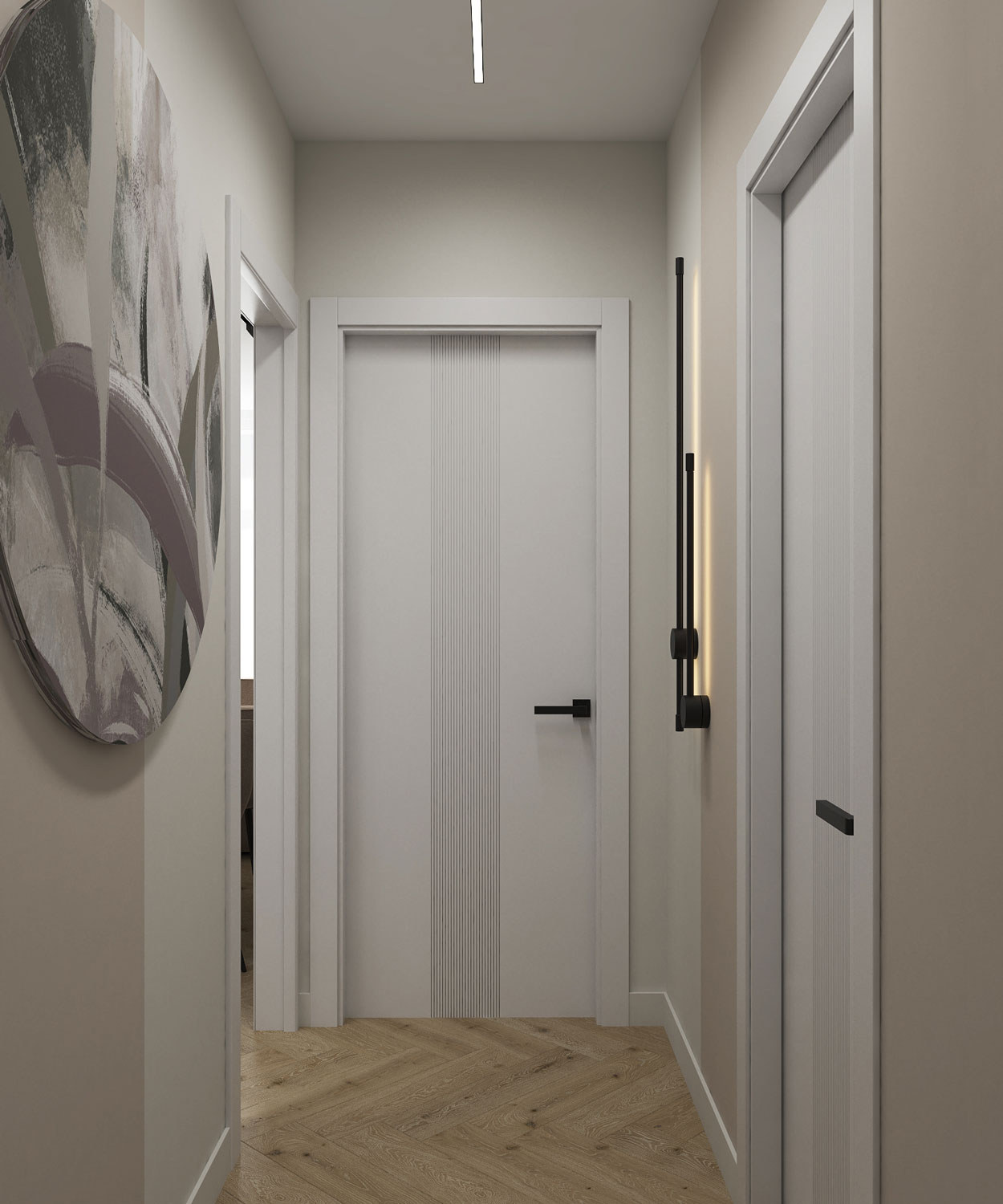 • Oversized and dark corridor: A large, windowless 14 m² hallway with narrow segments and awkward corners created a feeling of confinement and inefficiently consumed valuable space.